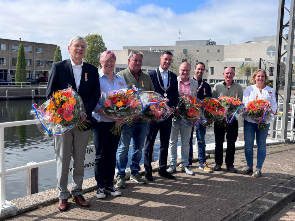 Lucienne Brons, Harry de Jonge, Ben Scharft, Harry de Meijer, Nancy Polderman, Robin Schalij allen Lid in de Orde van Oranje Nassau en Ruben Pol die de onderscheiding kreeg verbonden aan de titel Ridder in de Orde van Oranje Nassau.